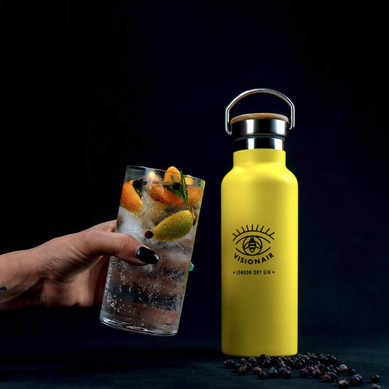 Die Leidenschaft für Gin und ökologische Nachhaltigkeit veranlasste zwei junge Sommeliers, Ilaria Lorini und Stefano Clemente, sich mit Leib und Seele dieser neuen Herausforderung zu widmen. Der Wunsch, ein sehr hochwertiges Produkt zu schaffen, das den Schutz unseres Planeten zum Ausdruck bringt und insbesondere den Bienen hilft. Diese kleinen Insekten, die durch den Klimawandel zunehmend gefährdet sind, sind für den weltweiten Nahrungsmittelbedarf unerlässlich. Die übermäßige Abfallmenge hat uns dazu veranlasst, nach einem Behälter zu suchen, der sowohl praktisch als auch nachhaltig ist. Als Verpackung haben wir uns für Edelstahl entschieden, der unendlich oft recycelt werden kann und als Wasserflasche für den Alltag und darüber hinaus wiederverwendet werden kann. Durch die Doppelwand können Sie sowohl heiße als auch kalte Getränke 12 Stunden lang auf Temperatur halten.