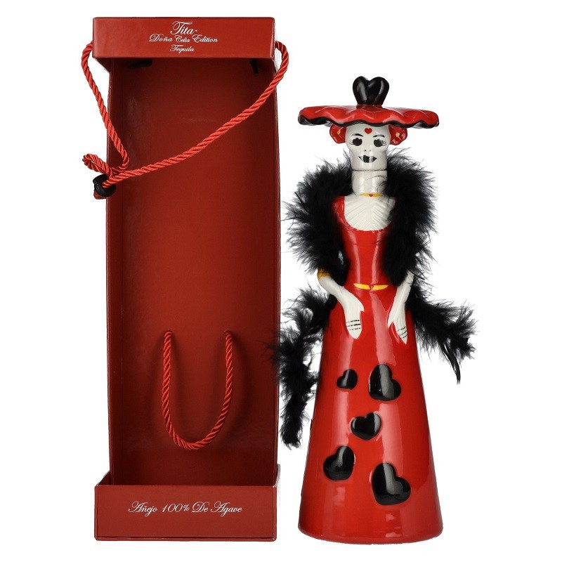 Die Dona Celia Catrina Tequila-Linie besteht zu 100 % aus Agave. Sie werden in Catrina-Porzellanfiguren in Tequila Town, Jalisco, Mexiko, abgefüllt. Diese Catrina-Figuren (Skelett) sind typisch für Mexiko und werden mit „Dia de los muertos“ (Tag des Todes), Halloween und Allerheiligen in Verbindung gebracht. Der Dona Celia Tequila Añejo 100% de Agave wird gedämpft und reift mindestens 1 Jahr.