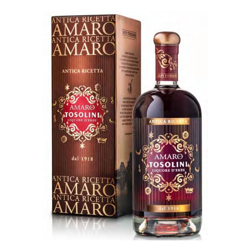 Un raffinato liquore d'erbe preparato secondo la ricetta del fondatore con l'orignale miscela di 15 varietà di erbe Mediterranee macerate con acquavite d’uva in tini di frassino e distillate in alambicchi botanici. Salicornia, Limonio, Finocchio marino, Assenzio marino, ovvero il prezioso Santonego raccolto a mano nella laguna friulana, assieme all’ utilizzo di purissima acqua delle Alpi friulane e della stagionatura in carati, regalano una sfumatura unica e inconfondibile all’Amaro Tosolini.